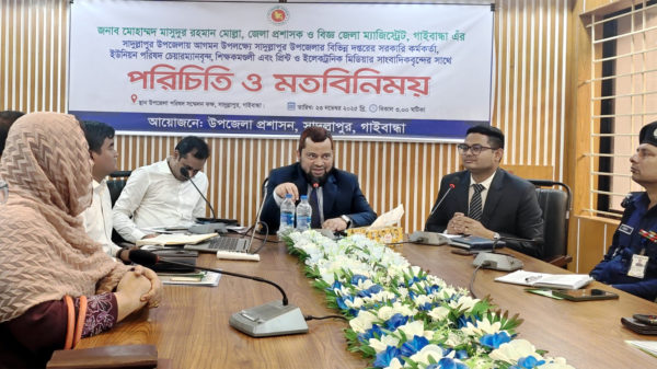 উঠান বৈঠকটির সঞ্চালনায় ছিলেন জেলা তথ্য অফিস গাইবান্ধার সাইন অপারেটর মাসুদুর রহমান মাসুদ।