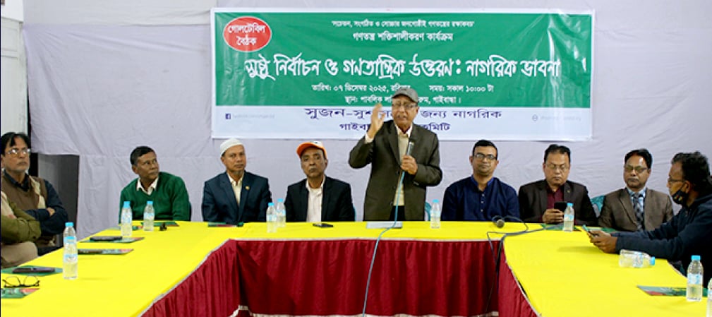 খবরবাড়ি ডেস্কঃ গাইবান্ধায় ‘সুষ্ঠু নির্বাচন ও গণতান্ত্রিক উত্তরণ-নাগরিক ভাবনা’ শীর্ষক এক গোলটেবিল বৈঠকে অনুষ্ঠিত হয়েছে।