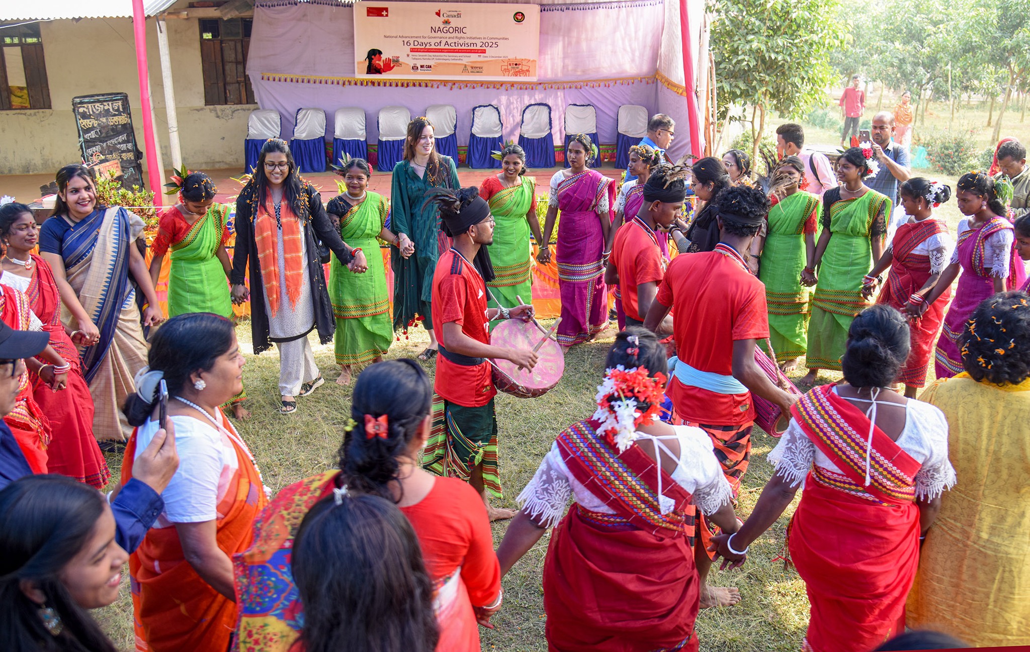 বুধবার (৩ নভেম্বর) দিনব্যাপী সাঁওতাল এলাকা গাইবান্ধার গোবিন্দগঞ্জ উপজেলার কামদিয়া ইউনিয়নের তল্লাপাড়ায় মানুষের জন্য ফাউন্ডেশনের সহযোগিতায় বেসরকারি সংস্থা অবলম্বন ও আমরাই পারি সংগঠনের উদ্যোগে আলোচনা ও সাংস্কৃতিক অনুষ্ঠানের আয়োজন করা হয়। বর্ণিল এই আয়োজনে নারীদের গ্রামীণ সাংস্কৃতিক পরিবেশনার মাধ্যমে সাঁওতালরা তাদের সংস্কৃতি তুলে ধরেন।