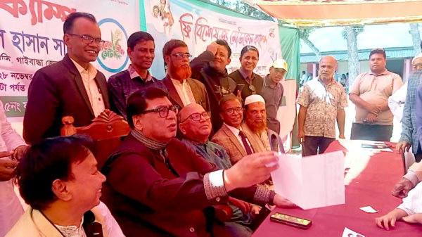 খবরবাড়ি নিজস্ব প্রতিবেদকঃ গাইবান্ধার সাদুল্লাপুর উপজেলার মীরপুর হাইস্কুল মাঠে বিশেষজ্ঞ চিকিৎসকদের ফ্রি মেডিকেল ক্যাম্প অনুষ্ঠিত হয়েছে। ক্যাম্পে চিকিৎসা নিতে আসা রোগীদের মাঝে বিনামূল্যে ঔষুধ প্রদান করা হয়। শুক্রবার (২৮ নভেম্বর)
