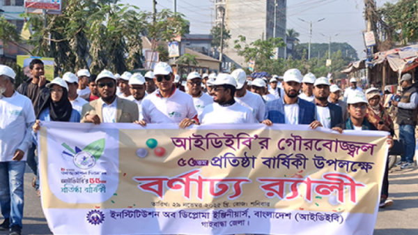 খবরবাড়ি ডেস্কঃ ৮ নভেম্বর ইনস্টিটিউশন অব ডিপ্লোমা ইঞ্জিনিয়ার্স বাংলাদেশের (আইডিইবি) ৫৫তম প্রতিষ্ঠাবার্ষিকী ও গণপ্রকৌশল দিবস উপলক্ষে গাইবান্ধায় র্যালী ও আলোচনা সভা অনুষ্ঠিত হয়েছে। আইডিইবির জেলা শাখার উদ্যোগে শনিবার (২৯ নভেম্বর)