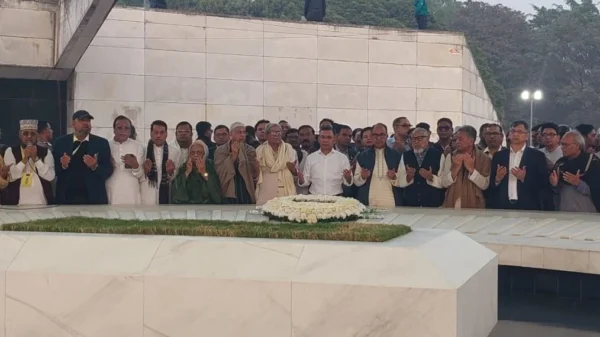 প্রধানমন্ত্রী শেখ হাসিনা ঐতিহাসিক ছয় দফা দাবি দিবস উপলক্ষে আজ ভোরে নগরীর ধানমন্ডিতে বঙ্গবন্ধু স্মৃতি যাদুঘরের সামনে জাতির পিতা বঙ্গবন্ধু শেখ মুজিবুর রহমানের প্রতিকৃতিতে পুষ্পস্তবক অর্পণ করে তাঁর প্রতি