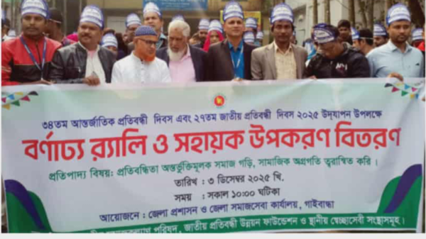 খবরবাড়ি ডেস্কঃ ‘প্রতিবন্ধিতা অন্তর্ভুক্তিমূলক সমাজ গড়ি, সামাজিক অগ্রগতি ত্বরান্বিত করি’ এ প্রতিপাদ্য বিষয় নিয়ে গাইবান্ধায় ৩৪তম আন্তর্জাতিক প্রতিবন্ধী দিবস এবং ২৭তম জাতীয় প্রতিবন্ধী দিবস-২০২৫ পালিত হয়েছে। বুধবার (৩ ডিসেম্বর) সকাল