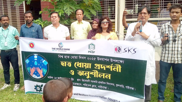 খবরবাড়ি ডেস্কঃ ‘হাত ধোয়ার নায়ক হোন’ এই প্রতিপাদ্যকে সামনে রেখে গাইবান্ধায় বিশ্ব হাত ধোয়া দিবস পালিত হয়েছে। গাইবান্ধা পরিবেশ ক্লাবের আয়োজেন দিবসটি উপলক্ষে বুধবার (১৫ অক্টোবর) গাইবান্ধা সদর উপজেলার ত্রিমোহিনী
