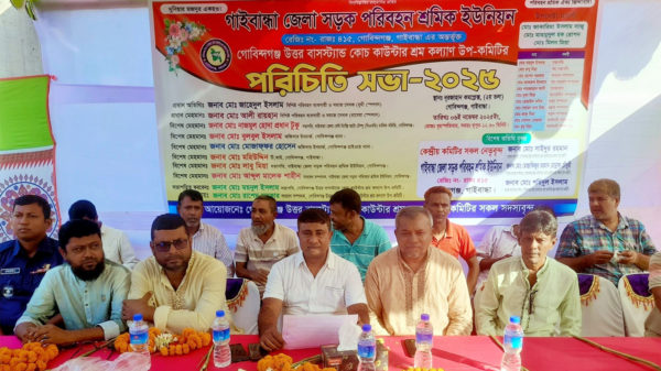 খবরবাড়ি নিজস্ব প্রতিবেদকঃ গাইবান্ধার গোবিন্দগঞ্জ উত্তর বাসস্ট্যান্ড কোচ-কাউন্টার শ্রম কল্যাণ উপ-কমিটির পরিচিত সভা অনুষ্ঠিত হয়েছে। বৃহস্পতিবার (৬ নভেম্বর) বিকেল ৩টায় পৌরশহরের চারমাথা সংলগ্ন নূরজাহান কমপ্লেক্সের দ্বিতীয় তলায় নব গঠিত শ্রম