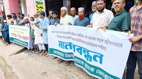 মোঃফেরদাউছ মিয়া,পলাশবাড়ী,গাইবান্ধাঃ গাইবান্ধার পলাশবাড়ীতে ইসলামী ব্যাংকে এস আলম গ্রুপের নিয়ন্ত্রণকালীন সময়ে অনিয়ম ও দলীয় প্রভাবের মাধ্যমে নিয়োগ পাওয়া কর্মকর্তাদের বহিষ্কারের দাবিতে মানববন্ধন ও বিক্ষোভ সমাবেশ অনুষ্ঠিত হয়েছে। সোমবার (৬ অক্টোবর)