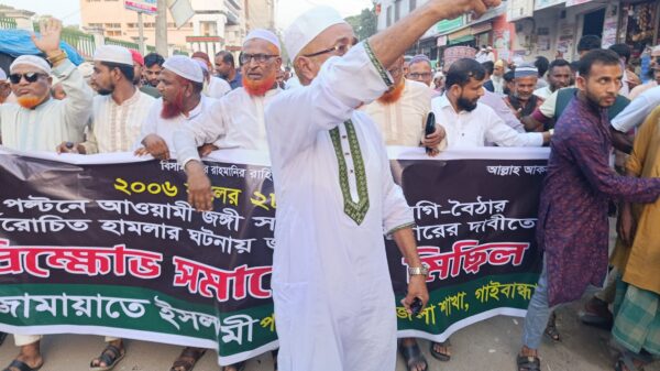 খবরবাড়ি ডেস্কঃ ২০০৬ সালের ২৮ অক্টোবর আওয়ামী লীগের লগি-বৈঠার তান্ডবে নিহত শহীদদের স্মরণে ও দায়ীদের বিচারের দাবীতে গাইবান্ধার পলাশবাড়ীতে বিক্ষোভ সমাবেশ ও মিছিল অনুষ্ঠিত হয়েছে। মঙ্গলবার (২৮ অক্টোবর) বিকেলে বাংলাদেশ