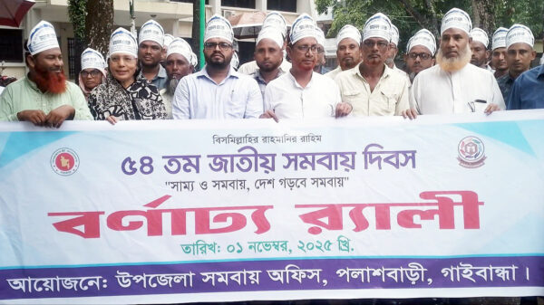 খবরবাড়ি ডেস্কঃ “সমবায়ে গড়ব দেশ-বৈষম্যহীন বাংলাদেশ” এই প্রতিপাদ্য বিষয় নিয়ে গাইবান্ধার পলাশবাড়ীতে ৫৪তম জাতীয় সমবায় দিবস-২০২৫ পালিত হয়েছে। উপজেলা সমবায় অফিসের আয়োজনে শনিবার (১ নভেম্বর) সকালে দিবসটি উপলক্ষে একটি র্যালী
