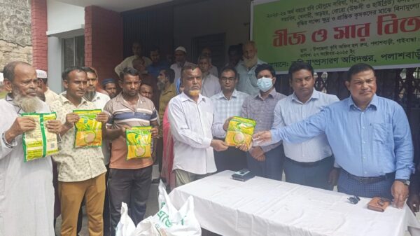 মোঃ ফেরদাউছ মিয়া,পলাশবাড়ী, গাইবান্ধাঃ গাইবান্ধার পলাশবাড়ীতে ক্ষুদ্র ও প্রান্তিক কৃষকদের মাঝে বিনামূল্যে বীজ ও সার বিতরণ করেছে উপজেলা কৃষি সম্প্রসারণ অধিদপ্তর। সোমবার (২৭ অক্টোবর-২৫) দুপুরে উপজেলা কৃষি অফিস চত্তরে কৃষি