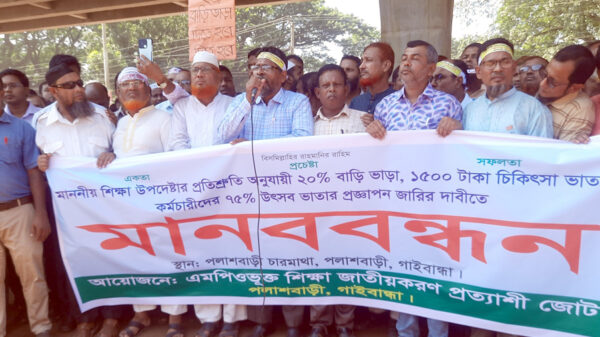 খরববাড়ি ডেস্কঃ একতা-প্রচেষ্টা-সফলতা; ঘন্টা বাজবেনা-কাশ চলবেনা, শিক্ষক কেন রাজপথে-তুমি কে আমি কে শিক্ষক-শিক্ষক, রক্ত লাগলে-রক্ত নে। উদীপ্ত শ্লোগানের ভাষায় মানবিক আর্তনাদে শিক্ষক-কর্মচারীদের ডাকে কেন্দ্রীয় কর্মসূচির অংশ হিসেবে নবম দিনের মত