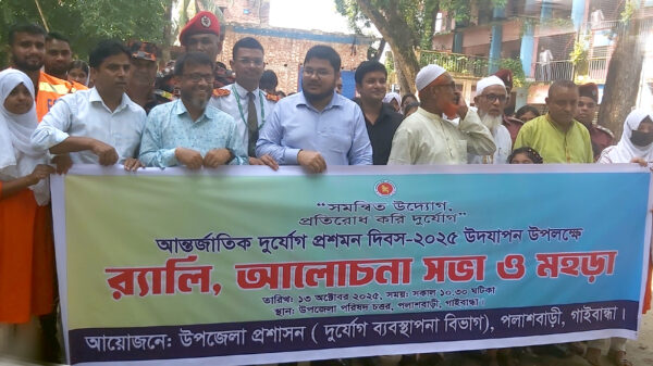 খবরবাড়ি ডেস্কঃ ‘সমন্বিত উদ্যোগ-প্রতিরোধ করি দুর্যোগ’ এই প্রতিপাদ্য বিষয় নিয়ে গাইবান্ধার পলাশবাড়ীতে আন্তর্জাতিক দুর্যোগ প্রশমন দিবস-২০২৫ উপলক্ষে র্যালী, আলোচনা সভা, ভুমিকম্প ও অগ্নিকান্ড বিষয়ক সচেতনতামূলক মহড়ার মধ্য দিয়ে পালিত হয়েছে।