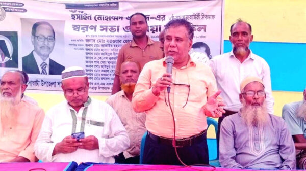 খবরবাড়ি ডেস্কঃ হুসাইন মোহাম্মদ এরশাদ এর ৬ষ্ঠ তম মৃত্যুবার্ষিকী পালন উপলক্ষে গাইবান্ধার সাঘাটা উপজেলার জাতীয় পার্টির উদ্যোগে সোমবার (১৪ জুলাই) ঘুড়িদহ সরকারি প্রাথমিক বিদ্যালয় মাঠে স্বরণসভা ও দো’আ মাহফিল অনুষ্ঠিত