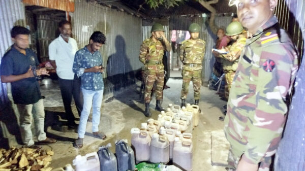 খবরবাড়ি ডেস্কঃ গাইবান্ধার সাঘাটা উপজেলার বোনারপাড়া এলাকায় যৌথবাহিনী অভিযান চালিয়ে ২৪০ লিটার চোলাইমদসহ ৩ মাদক কারবারীকে আটক করেছে। সোমবার (৭ জুলাই) রাত ১০টা থেকে ১২টা পর্যন্ত সাঘাটা উপজেলার বোনারপাড়া রেলওয়ে