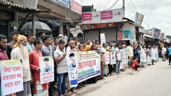খবরবাড়ি ডেস্কঃ গাইবান্ধার সাদুল্লাপুর উপজেলার ইদিলপুর ইউনিয়নের জনগনের জান-মালের নিরাপত্তা ও চোর-ডাকাত এবং দূর্বৃত্তদের বিরুদ্ধে পুলিশের পদক্ষেপ গ্রহণের দাবীতে মানববন্ধন করেছে এলাকাবাসী। শুক্রবার (১ আগস্ট) বিকালে ইউনিয়নের ইদিলপুর গ্রামের নতুন