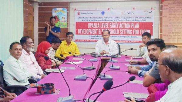 খবরবাড়ি ডেস্কঃ গাইবান্ধার সুন্দরগঞ্জে উপজেলা পর্যায়ে বন্যার আগাম প্রস্তুতি এবং স্থানীয় বিপদসীমা নির্ধারণ বিষয়ক সভা অনুষ্ঠিত হয়েছে। বুধবার (১৩ আগস্ট) সকাল ১০টায় উপজেলা পরিষদ সম্মেলন কক্ষে এ সভার আয়োজন করে