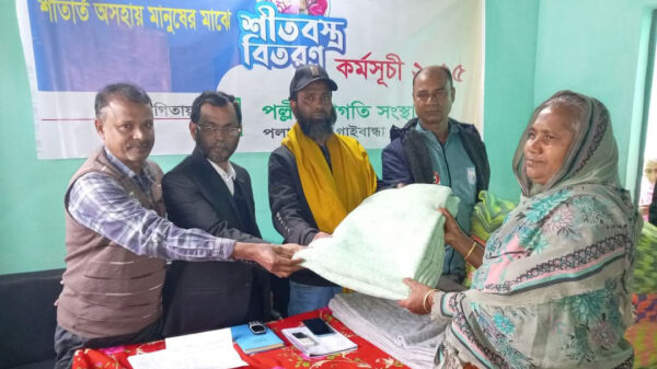 খবরবাড়ি ডেস্কঃ গাইবান্ধার পলাশবাড়ীতে ফেডারেশন অব এনজিওস ইন-বাংলাদেশ এবং পল্লী অগ্রগতি সংস্থার যৌথ উদ্যোগে দুঃস্থ-অসহায় শীতার্ত মানুষের মাঝে শীতবস্ত্র (কম্বল) বিতরণ করা হয়। সোমবার (১৩ জানুয়ারি) বিকেলে পল্লী অগ্রগতি