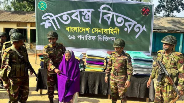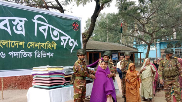 খবরবাড়ি ডেস্কঃ বাংলাদেশ সেনাবাহিনী দেশের ও জনগণের কল্যাণে নানাবিধ জনসেবামূলক কর্মকান্ড পরিচালনা করে আসছে। এরই ধারাবাহিকতায় প্রতি বছরের ন্যায় এবারও দরিদ্র শীতার্ত মানুষের মাঝে বাংলাদেশের সেনাবাহিনীর ৬৬ পদাতিক ডিভিশনের অধীনস্থ