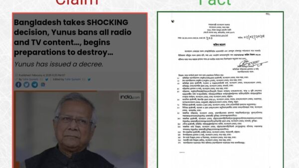 মুক্তিযুদ্ধভিত্তিক কন্টেন্ট অপসারণ প্রসঙ্গে ‘প্রধান উপদেষ্টার আদেশ’ দাবিতে ভারতীয় গণমাধ্যমে ভুয়া তথ্য প্রচার করা হয়েছে। প্রেস ইনস্টিটিউট বাংলাদেশের (পিআইবি) ফ্যাক্ট চেক টিম পরিচালিত অনুসন্ধানে এ তথ্য উঠে এসেছে। পিআইবি মন্ত্রণালয়ের