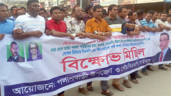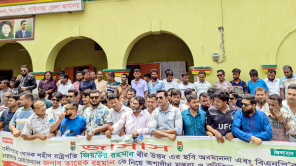 খবরবাড়ি ডেস্কঃ বিএনপির প্রতিষ্ঠাতা শহীদ প্রেসিডেন্ট জিয়াউর রহমানের ছবি অবমাননা এবং দলের ভারপ্রাপ্ত চেয়ারম্যান তারেক জিয়া সম্পর্কে কুরুচিপূর্ণ স্লোগানের প্রতিবাদে গাইবান্ধায় শনিবার (১৯ জুলাই) দুপুরে বিক্ষোভ সমাবেশ হয়েছে। জাতীয়তাবাদী সামাজিক