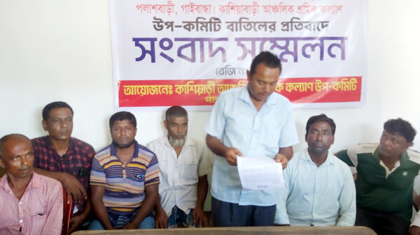 খবরবাড়ি ডেস্কঃ গাইবান্ধা জেলা ট্রাক, ট্যাংকলড়ী, কাভার্ডভ্যান ও ট্রাক্টর শ্রমিক পরিষদ (রেজিঃ নং-০৩৪) অন্তর্ভুক্ত পলাশবাড়ীর কাশিয়াবাড়ী আঞ্চলিক শ্রম কল্যাণ উপ-কমিটি বাতিলের প্রতিবাদে এক জরুরি সংবাদ সম্মেলন অনুষ্ঠিত হয়। কাশিয়াবাড়ী আঞ্চলিক