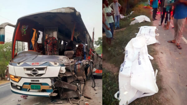 খবরবাড়ি ডেস্কঃ দিনাজপুরের ঘোড়াঘাটে এক মর্মান্তিক সড়ক দুর্ঘটনায় ৫ জন নিহত হয়েছেন। এ ঘটনায় কমপক্ষে ১০ জন আহত হয়েছে। শুক্রবার (১৩ জুন) ভোরে উপজেলার নূরজাহানপুর এলাকায় এ দূর্ঘটনাটি ঘটে ।