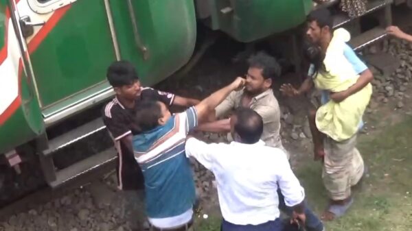 খবরবাড়ি ডেস্কঃ ট্রেনের দুই যাত্রীর মধ্যে বিরোধ থামাতে গিয়ে মারধরের শিকার হয়েছেন গাইবান্ধা রেল স্টেশনমাস্টার। শনিবার (১৪ জুন) দুপুর সাড়ে ১২টার দিকে স্টেশনে এ ঘটনা ঘটে। প্রত্যক্ষদর্শীরা জানান, লালমনিরহাট থেকে