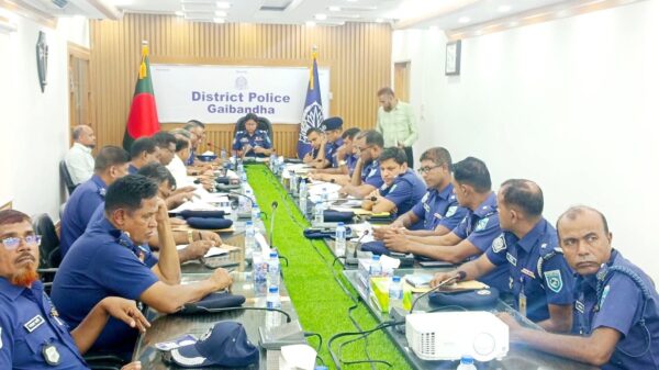 খবরবাড়ি ডেস্কঃ গাইবান্ধা জেলা পুলিশের আয়োজনে মাসিক কল্যাণসভা ও আইনশৃঙ্খলা বিষয়ক সভা অনুষ্ঠিত হয়েছে। বুধবার (৪ জুন) পুলিশ লাইন্স ড্রিল সেডে অফিসার ও ফোর্সের সমন্বয়ে জেলা পুলিশ সুপার নিশাত এ্যঞ্জেলার