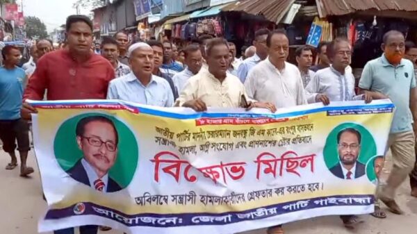 খবরবাড়ি ডেস্কঃ জাতীয় পার্টির চেয়ারম্যান জিএম কাদেরের রংপুর বাসভবনে সন্ত্রাসী হামলা, অগ্নিসংযোগ এবং প্রাণনাশের চেষ্টার প্রতিবাদে কেন্দ্রীয় কর্মসূচির অংশ হিসেবে গাইবান্ধায় বিক্ষোভ মিছিল ও সমাবেশ অনুষ্ঠিত হয়েছে। শনিবার (৩১ মে)