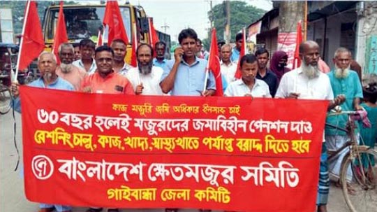 খবরবাড়ি ডেস্কঃ আসন্ন বাজেটে গ্রামীণ মজুরদের জন্য রেশনিং, বিনা জমায় পেনশন স্কিম চালু, গ্রামীণ প্রকল্পে পর্যাপ্ত বরাদ্দের দাবীতে গাইবান্ধায় বিক্ষোভ মিছিল ও সমাবেশ করেছে বাংলাদেশ ক্ষেতমজুর সমিতি। সংগঠনটির জেলা কমিটির
