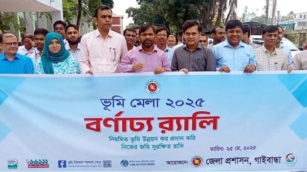 খবরবাড়ি ডেস্কঃ ‘নিয়মিত ভূমি উন্নয়ন কর প্রদান করি নিজের জমি সুরক্ষিত রাখি’ প্রতিপাদ্য বিষয় নিয়ে গাইবান্ধায় ৩ দিনব্যাপী ভূমি মেলার উদ্বোধন হয়েছে। জেলা প্রশাসনের আয়োজনে রোববার (২৫ মে) জেলা প্রশাসক
