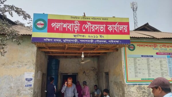 গাইবান্ধার পলাশবাড়ী পৌরসভায় অপরিকল্পিত ও অব্যবস্থাপনা ড্রেনেজ এর কারণে একটু বৃষ্টি হলে পৌর শহরের বিভিন্ন এলাকায় পানি জমে গিয়ে বাসাবাড়ি ও ব্যবসাপ্রতিষ্ঠানে প্রবেশ করেছে। পানি নিষ্কাশনের সঠিক ব্যবস্থা না থাকার