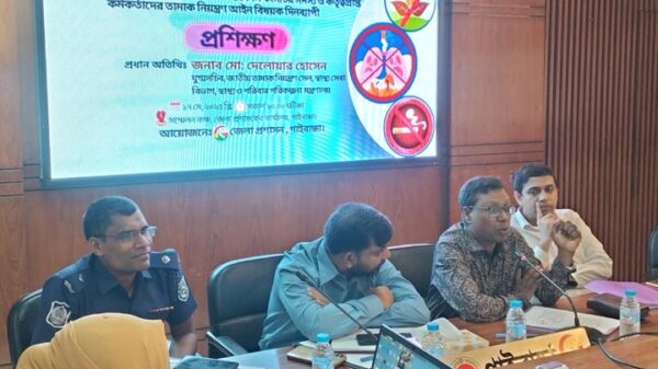 খবরবাড়ি ডেস্কঃ জেলা তামাক নিয়ন্ত্রণ আইন বাস্তবায়ন টাস্কফোর্স কমিটির সদস্য ও কর্তৃত্বপ্রাপ্ত কর্মকর্তাদের তামাক নিয়ন্ত্রণ আইন বিষয়ক এক কর্মশালা অনুষ্ঠিত হয়েছে। শনিবার (১৭ মে) সকালে জেলা প্রশাসক কার্যালয়ের সম্মেলন কক্ষে
