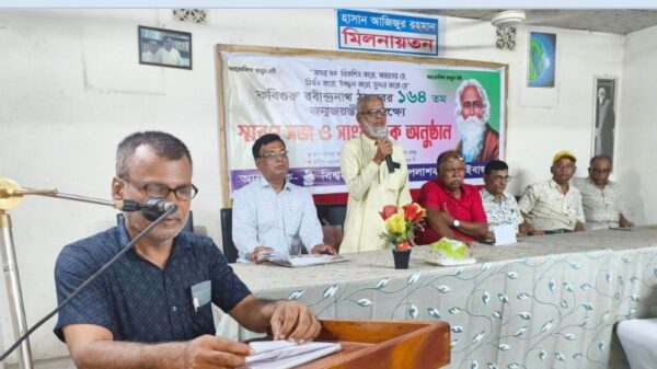 খবরবাড়ি ডেস্কঃ গাইবান্ধার পলাশবাড়ীতে বিশ্বকবি রবীনন্দ্রনাথ ঠাকুরের ১৬৪তম জন্মজয়ন্তী উদযাপন উপলক্ষ্যে স্মরণ সভা ও সাংস্কৃতিক অনুষ্ঠান অনুষ্ঠিত হয়েছে। বিশ্বসাহিত্য কেন্দ্রের আয়োজনে বৃহস্পতিবার (৮ মে) সন্ধ্যায় হাসান আজিজুর রহমান মিলনায়তন