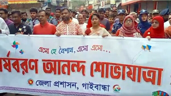 খবরবাড়ি ডেস্কঃ সারাদেশের ন্যায় ধর্ম-বর্ণের বিভেদ ভুলে গাইবান্ধায় বর্ণিল আয়োজনে উদযাপিত হচ্ছে বাঙালির সর্বজনীন উৎসব পহেলা বৈশাখ। সোমবার (১৪ এপ্রিল) বাংলা নববর্ষ-১৪৩২ বঙ্গাব্দ বর্ষবরণে বর্ণাঢ্য শোভাযাত্রা, সাংস্কৃতিক পরিবেশনাসহ নানা আয়োজনের