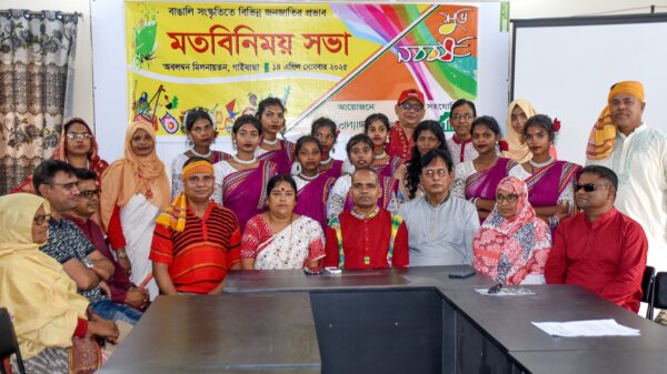 খবরবাড়ি ডেস্কঃ গাইবান্ধা বাংলা নববর্ষ উপলক্ষে ‘বাঙালি সংস্কৃতি বিকাশে বিভিন্ন জনজাতির ভূমিকা’ শীর্ষক এক মতবিনিময় সভা অনুষ্ঠিত হয়েছে। সোমবার (১৪ এপ্রিল) অবলম্বন কনফারেন্স রুমে নাগরিক সংগঠন জনউদ্যোগ-এর আয়োজনে মতবিনিময় সভায়