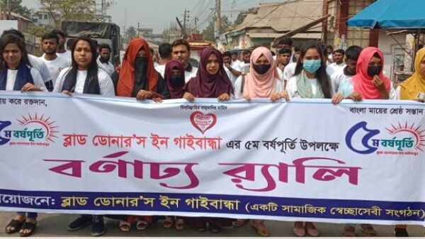 খবরবাড়ি ডেস্কঃ স্বেচ্ছায় করে রক্তদান, বাংলা মায়ের শ্রেষ্ঠ সন্তান স্লোগান নিয়ে স্বেচ্ছাসেবী সংগঠন ব্লাড ডোনার’স ইন গাইবান্ধা এর ৫ম বর্ষপূর্তি উপলক্ষে বিভিন্ন কর্মসূচি পালন করা হয়। কর্মসূচির মধ্যে ছিল বর্ণাঢ্য
