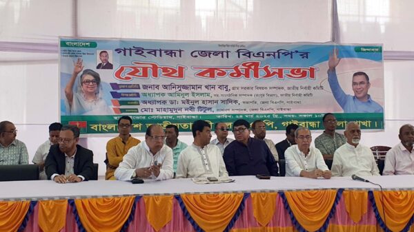 খবরবাড়ি ডেস্কঃ গাইবান্ধা জেলা বাংলাদেশ জাতীয়তাবাদী দল বিএনপি’র যৌথ কর্মীসভা অনুষ্ঠিত হয়েছে। সোমবার (২৪ মার্চ) সকালে শহরের ইনডোর স্টেডিয়ামে এ সভা অনুষ্ঠিত হয়। জেলা বিএনপির সভাপতি অধ্যাপক ডা. মইনুল হাসান