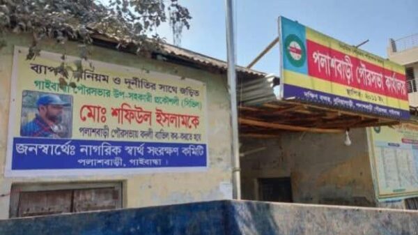 দূর্নীতির বরপুত্র, ঘুষ বাণিজ্যের হোতা উপ-সহকারী প্রকৌশলী মোহাম্মাদ শফিউল ইসলামকে সম্প্রতি গাইবান্ধা পৌরসভা হতে পলাশবাড়ী পৌরসভায় বদলি করায় ফুসে উঠেছে পলাশবাড়ী পৌরবাসী। দূর্নীতিবাজ ওই উপ-সহকারী প্রকৌশলীর বদলী বাতিলের দাবী জানিয়ে