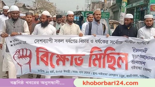 খবরবাড়ি ডেস্কঃ দেশব্যাপী সকল ধর্ষণের বিচার ও ধর্ষকের সর্বোচ্চ শাস্তির দাবীতে বুধবার (১২ মার্চ) ইসলামী ছাত্র আন্দোলন বাংলাদেশ গাইবান্ধা জেলা শাখার উদ্যোগে শহরে একটি বিক্ষোভ মিছিল বের হয়ে বিভিন্ন সড়ক