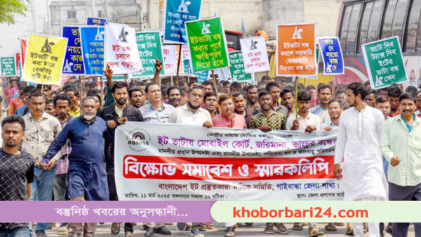 খবরবাড়ি ডেস্কঃ গাইবান্ধায় ইটভাটায় মোবাইল কোর্ট, জরিমানা ও ভাংচুর বন্ধের দাবীতে বিক্ষোভ মিছিল ও সমাবেশ করেছে ইটভাটা মালিক-শ্রমিকেরা। কর্মসূচি শেষে এসব দাবী জানিয়ে জেলা প্রশাসকের মাধ্যমে বন, পরিবেশ ও জলবায়ু