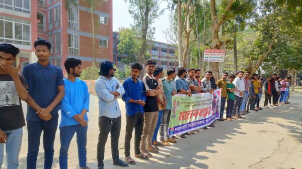 খবরবাড়ি ডেস্কঃ দেশজুড়ে নারীদের বিরুদ্ধে সহিংসতা-নির্যাতন-নীপিড়ন-ধর্ষণ এবং অনলাইনে হেনস্থা এবং আইনশৃঙ্খলা পরিস্থিতির অবনতি ও বিচার হীনতার প্রতিবাদে গাইবান্ধার পলাশবাড়ী সরকারি কলেজ ছাত্রদলের আয়োজনে এক মানববন্ধন অনুষ্ঠিত হয়েছে। সোমবার (১০ মার্চ)