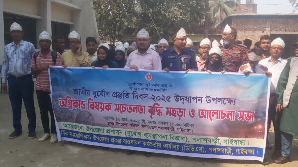 খবরবাড়ি ডেস্কঃ ‘দুর্যোগের পূর্বাভাস প্রস্তুতি-বাঁচায় প্রাণ ক্ষয়ক্ষতি’ প্রতিপাদ্য বিষয় নিয়ে গাইবান্ধার পলাশবাড়ীতে জাতীয় দূর্যোগ প্রস্তুতি দিবস পালন করা হয়েছে। দূর্যোগ ব্যবস্থাপনা ও ত্রাণ মন্ত্রণালয় এবং উপজেলা প্রশাসনের যৌথ আয়োজনে জাতীয়