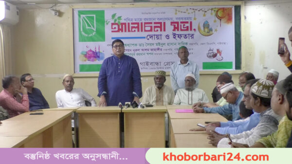 খবরবাড়ি ডেস্কঃ গাইবান্ধা প্রেস ক্লাবের উদ্যোগে পবিত্র রমজান উপলক্ষে এক আলোচনা সভা ও দো’আ ইফতার মহাফিল অনুষ্ঠিত হয়েছে। রোববার (৯ মার্চ) চেম্বার অব কমার্স এন্ড ইন্ড্রাট্রিজ মিলনায়তনে প্রেস প্রেস ক্লাবের