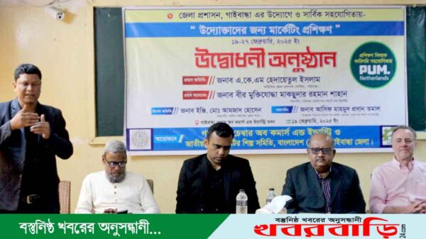 খবরবাড়ি ডেস্কঃ গাইবান্ধায় ১ দিনব্যাপী ‘উদ্যোক্তাদের জন্য মার্কেটিং’ বিষয়ক এক প্রশিক্ষণ কোর্স শুরু হয়েছে। বুধবার (১৯ ফেব্রুয়ারি) সকাল ১০টায় প্রধান অতিথি হিসেবে এ প্রশিক্ষণ কোর্সের (১ম ব্যাচ) উদ্বোধন করেন অতিরিক্ত