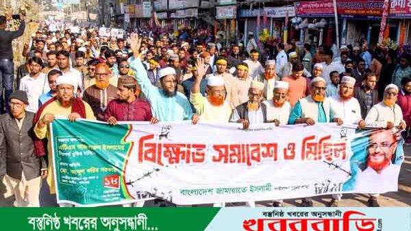 খবরবাড়ি ডেস্কঃ কেন্দ্রীয় কর্মসূচীর অংশ হিসেবে বাংলাদেশ জামায়াতে ইসলামীর ভারপ্রাপ্ত সেক্রেটারী জেনারেল এটিএম আজাহারুল ইসলামের মৃত্যুদন্ড মওকুফ করে অবিলম্বে মুক্তি এবং দলের নিবন্ধনের দাবীতে গাইবান্ধায় বিক্ষোভ মিছিল ও সমাবেশ অনুষ্ঠিত