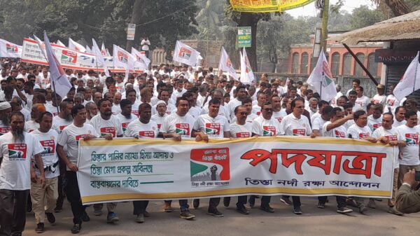 লালমনিরহাট প্রতিনিধি।। ‘জাগো বাহে তিস্তা বাঁচাই’ স্লোগানে তিস্তা মহাপরিকল্পনা বাস্তবায়নের দাবিতে লালমনিরহাটে পদযাত্রা করেছে তিস্তাপাড়ে হাজার হাজার মানুষ। সোমবার(১০ ফেব্রুয়ারি) দুপুরে এই পদযাত্রার নেতৃত্ব দেন তিস্তা নদী রক্ষা আন্দোলনের
