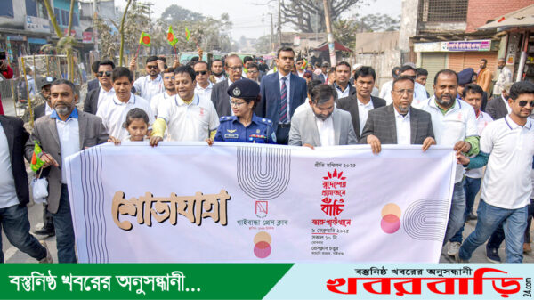 খবরবাড়ি ডেস্কঃ ‘স্বদেশের প্রয়োজনে-বাঁচি তারুণ্য উত্থানে’ শ্লোগানে গাইবান্ধা প্রেস কাবের প্রীতি সম্মিলন অনুষ্ঠিত হয়েছে। এই সম্মিলনে সাংবাদিকরা যে কোনো পরিস্থিতিতে ঐক্যবদ্ধ থাকার প্রত্যয় ঘোষণা করেন। রোববার (৯ ফেব্রুয়ারি) সকালে শহরের