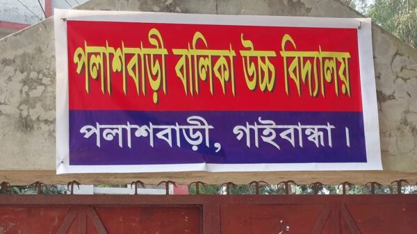 গাইবান্ধা জেলার পলাশবাড়ী উপজেলায় বঙ্গবন্ধু বালিকা উচ্চ বিদ্যালয়ের সাইনবোর্ড সরিয়ে নতুন প্রস্তাবিত নামের সাইনবোর্ড লাগিয়ে দিলো বৈষম্য বিরোধী ছাত্র আন্দোলনের নেতৃবৃন্দ। ৬ ফেব্রুয়ারি বৃহস্পতিবার সকাল ১১ টায় স্কুলের সামনের ফটকে