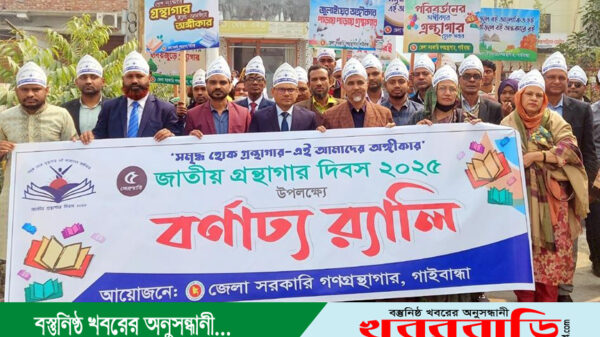 খবরবাড়ি ডেস্কঃ ‘সমৃদ্ধ হোক গ্রন্থাগার, এই আমাদের অঙ্গীকার’ এ প্রতিপাদ্য বিষয় নিয়ে গাইবান্ধায় জাতীয় গ্রন্থাগার দিবস পালন করা হয়েছে। এ উপলক্ষে বুধবার (৫ ফেব্রুয়ারি) সকাল ১১টায় গাইবান্ধা জেলা গণগ্রন্থাগারের উদ্যোগে