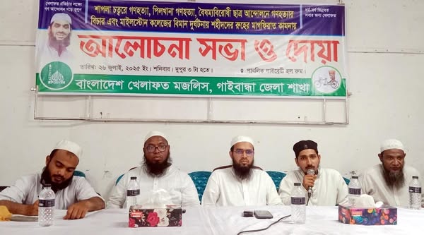 মাইলস্টোনে দুর্ঘটনায় শহীদদের রূহের মাগফিরাত কামনায় গাইবান্ধায় খেলাফত মজলিসের আলোচনা সভা ও দো’আ মাহফিল